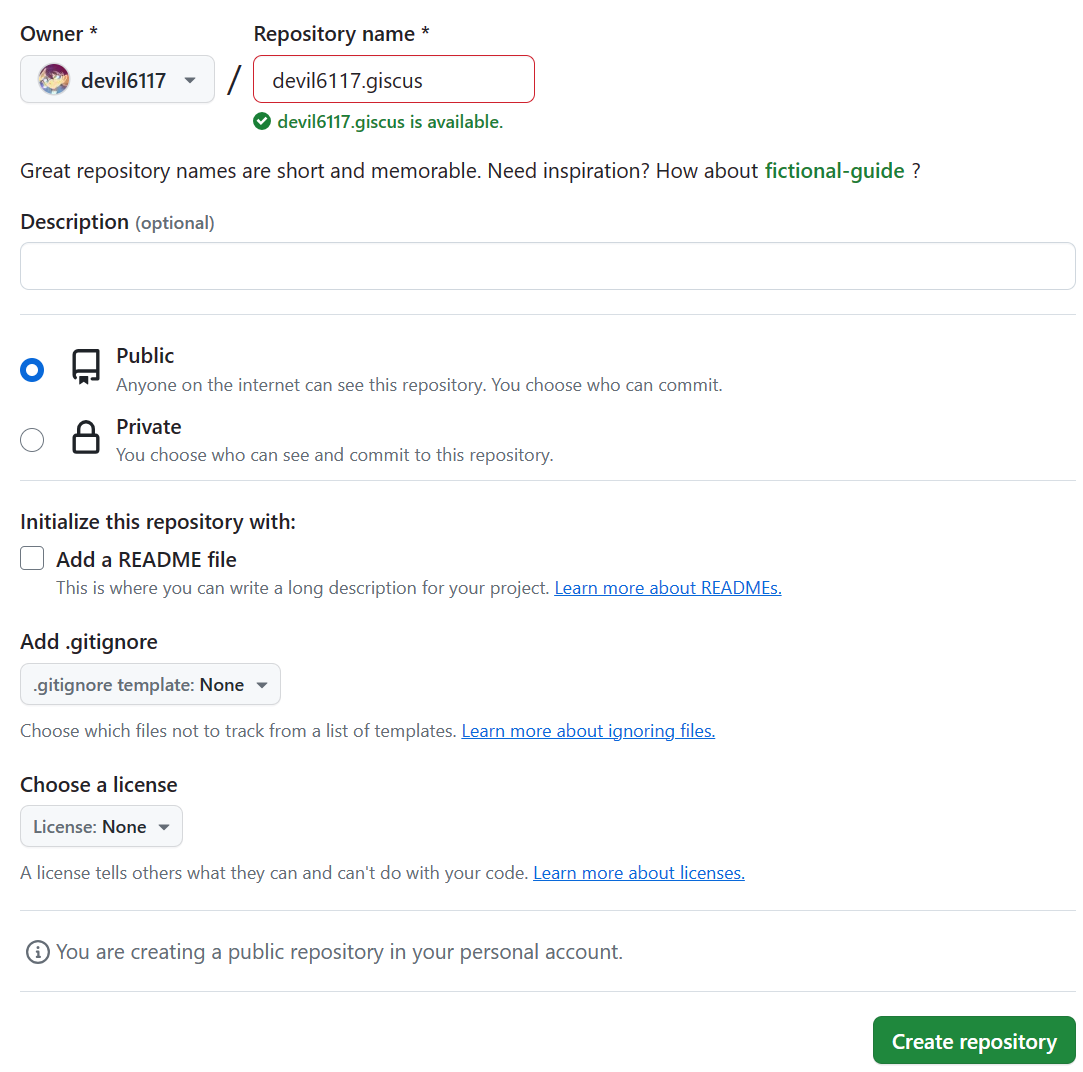 这并不是一个必需的步骤,事实上你也可以直接使用博客本来的仓库。但我建议还是分离不同仓库,这样既方便后续调整不影响博客,如果迁移的话,你只能带走博客内容,却无法带走评论,如果单独一个仓库,只需要在迁移后的新博客重新指向该仓库即可。