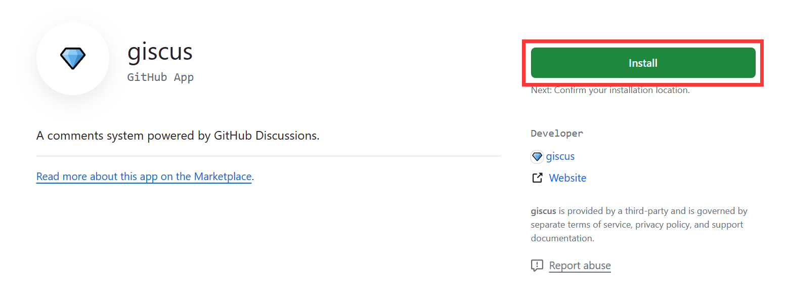 访问 https://github.com/apps/giscus 进入 Giscus 安装界面。