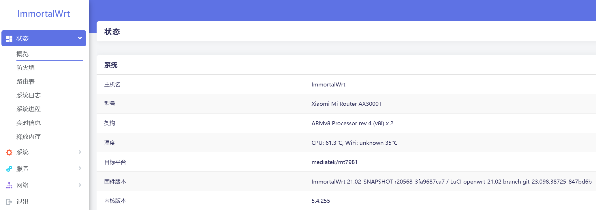 选择解压出来的ImmortalWRT固件刷入等待重启就差不多了。